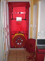 A la fin du chantier de contruction, il est obligatoire de faire un test d'étanchéité à l'air qui consiste à vérifier si sous 4 pascal de pression le débit de fuite est inférieur à 0,6 m3/h. pour une maison individuelle. Pour effectuer ce diagnostic on obstrue toutes les entrées et sorties d'air naturelles, et avec l'aide d' une porte soufflante le logement est mis sous pression. Il est important de souligner que le test d'infiltrométrie est soumis à une obligation de résultat. {{Ainsi, on recommande vivement||Il est ainsi fortement conseillé||Il est conseillé de faire un test d'infiltrométrie intermédiaire pour vérifier que le logement respectera ce seuil. Il sera en effet trés compliqué d'intervenir sur un logement finalisé (peinture, placo achevé) lorsque le test d'étanchéité n'est pas conforme .